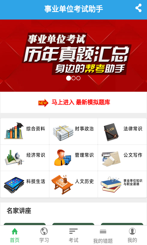 事業單位考試助手專為正在考取公務員、事業編制的學員設計,涵蓋特訓視頻,各模塊復習資料、在線題庫等功能。事業單位考試助手軟件定期更新在線題庫、學習資料以及特訓視頻。 學員使用方便,隨時、隨地可查看復習資料。