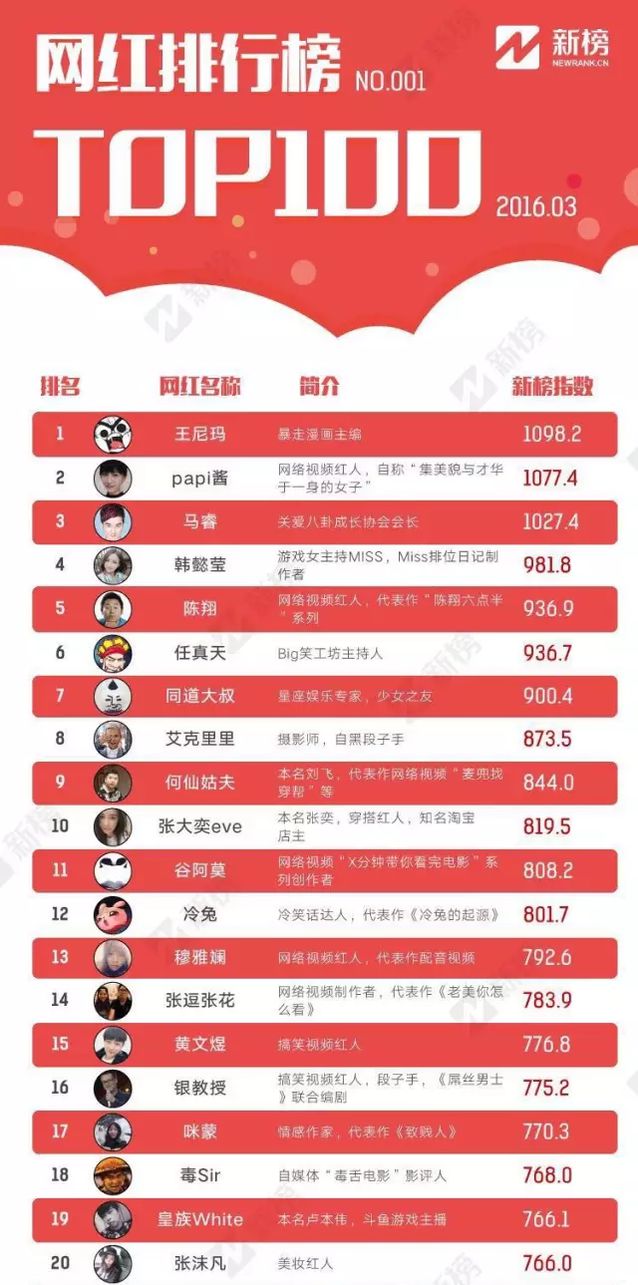 在新榜推出的首期網紅排行榜中,“毒sir”名列第18位